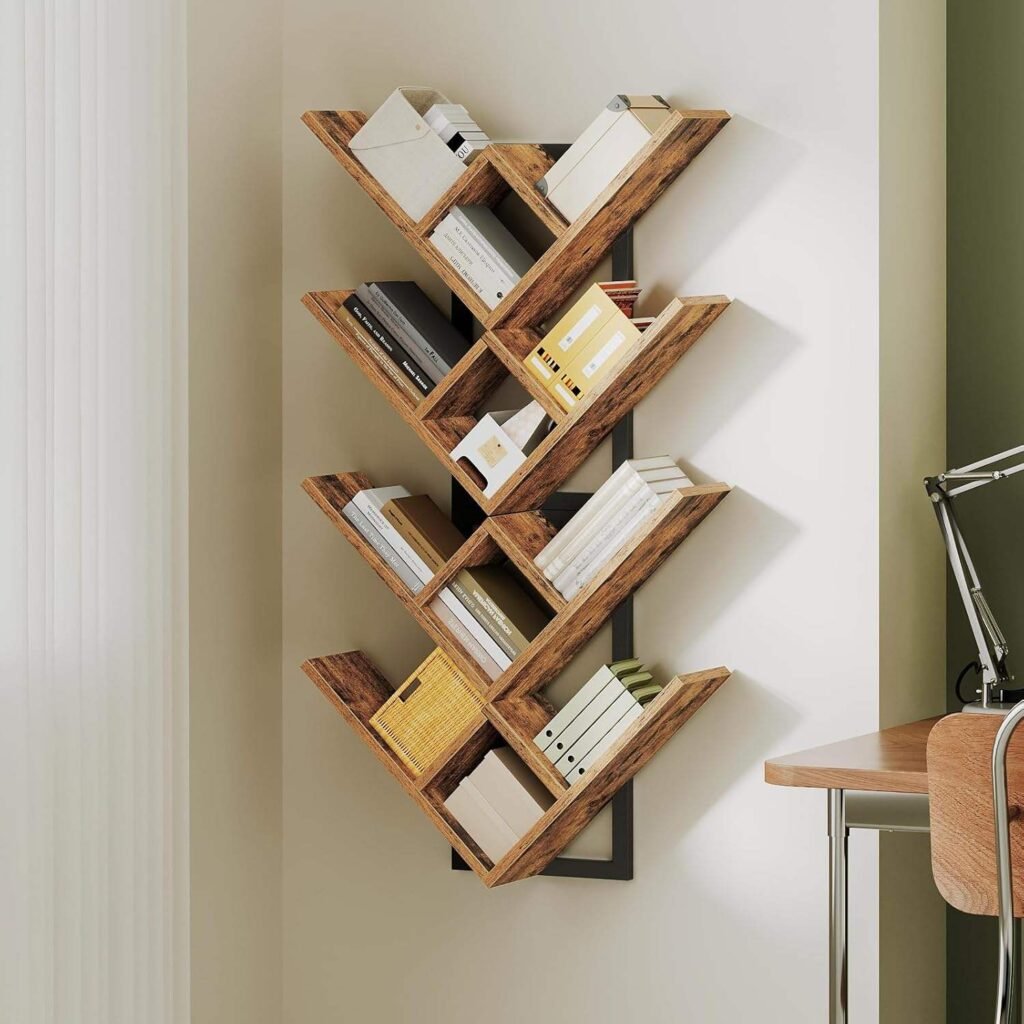 Geometric Floating Wood Shelves for Living Room