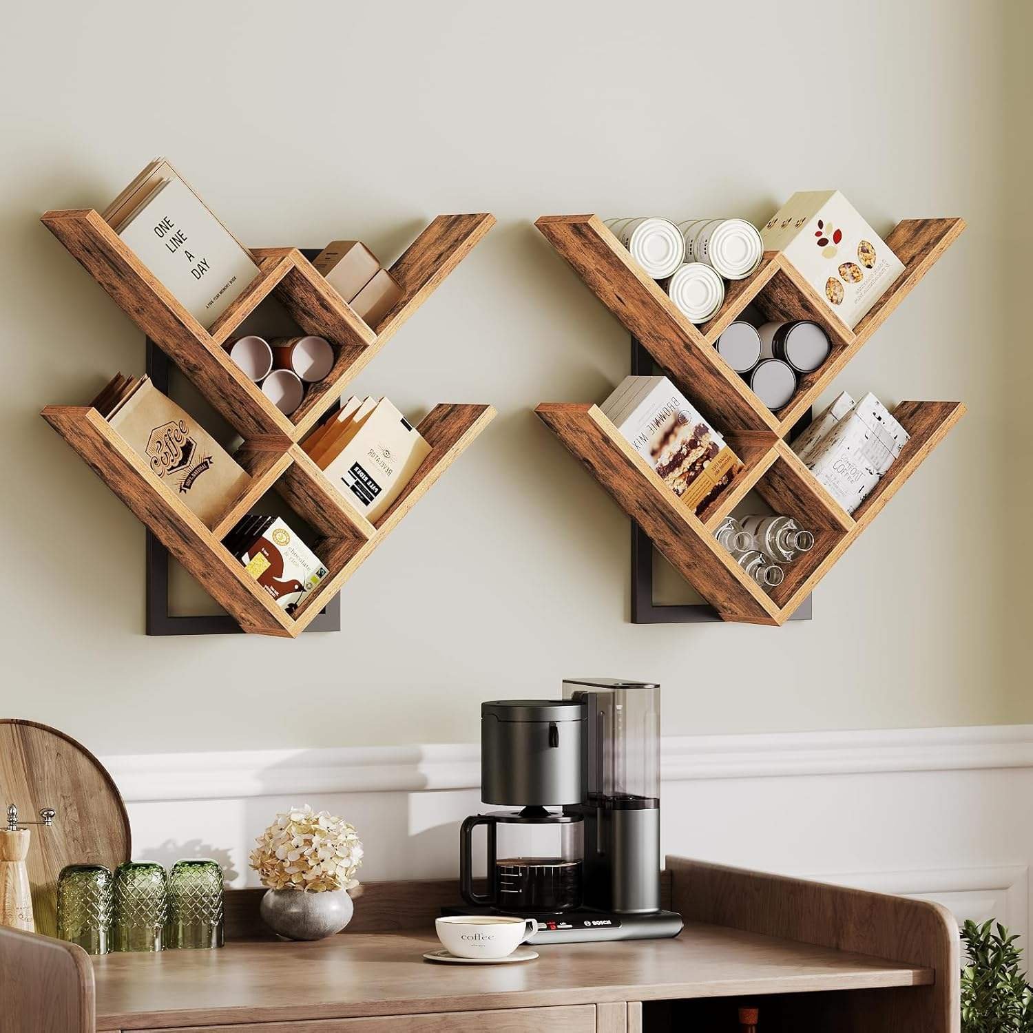 The Geometric Floating Wood Shelves are designed to combine functional storage with modern visual appeal. They provide a practical way to display books, plants, artwork, or decorative objects while keeping your living room organized and clutter-free. Their geometric design adds depth and character to your walls, enhancing the overall look of the space while maximizing vertical storage without taking up floor area.